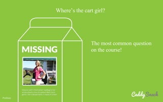 This document proposes an on-demand ordering and delivery service called CaddySnack for golf resorts. It describes problems with the current snack cart system such as slow service that reduces the guest experience and pace of play. The proposed CaddySnack solution would allow golfers to order from a mobile app and have food and other items delivered to them on the course within minutes. This could improve the guest experience, increase revenue for resorts, and provide analytics on guest profiles. Financial projections estimate the US market potential at $620 million and profitability by late 2017.