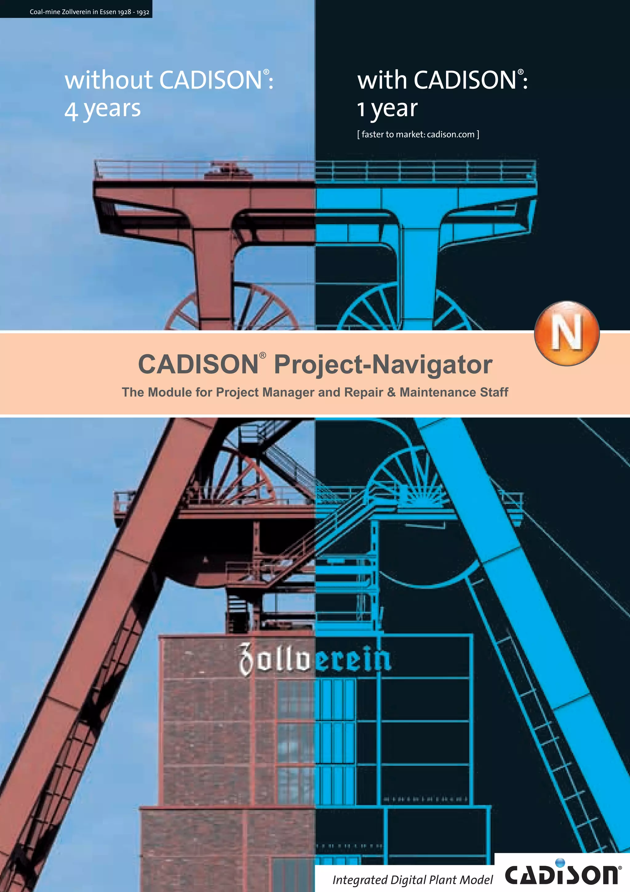 The Cadison® Project-Navigator is a module designed for project management and maintenance staff, facilitating access to crucial project data through easy navigation and viewer tools. It streamlines the plant design process by ensuring that all relevant information is readily available, reducing errors associated with redundant data management. The integrated system also supports report generation, multi-site collaboration, and offers a user-friendly interface, helping improve efficiency and competitiveness in plant planning and maintenance.