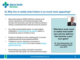The document discusses the utility of real-world evidence (RWE) in supporting value-based decision making from a provider's perspective. It provides three cases as examples: