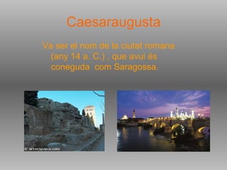 Caesaraugusta Va serel nom de la ciutat romana (any 14 a. C.) , que avui és coneguda com Saragossa.