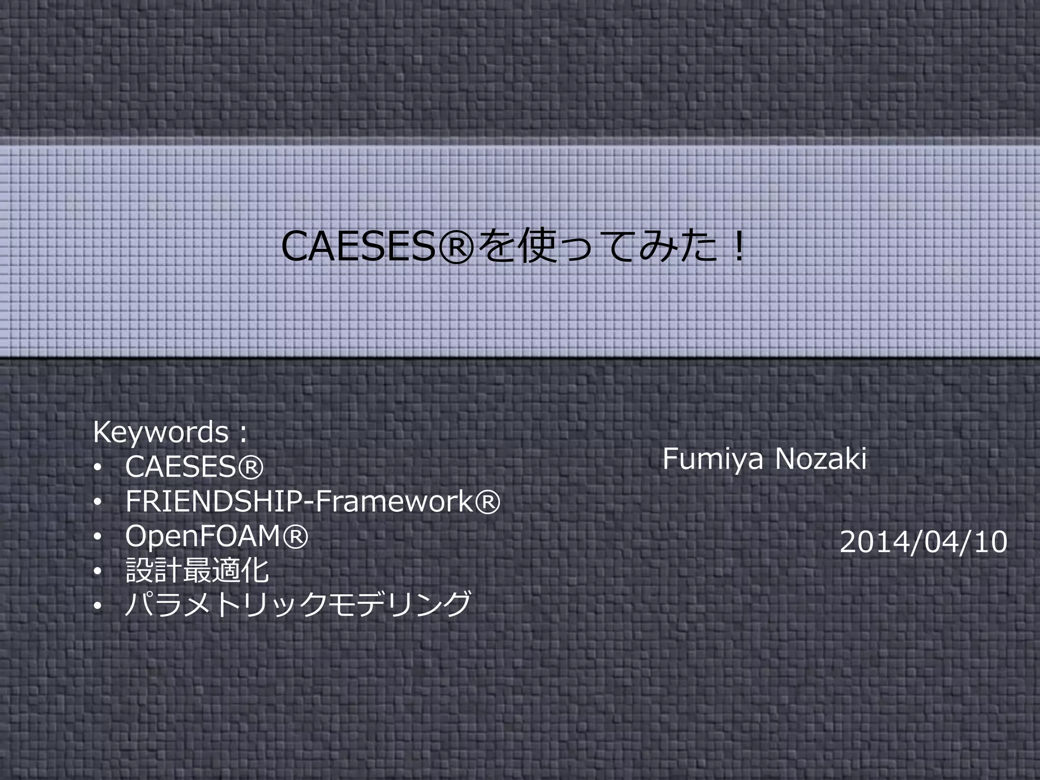 Fumiya Nozaki 最終更新日: 2014年6月1日 日本語版 CAESES®を使ってみよう! Keywords: •