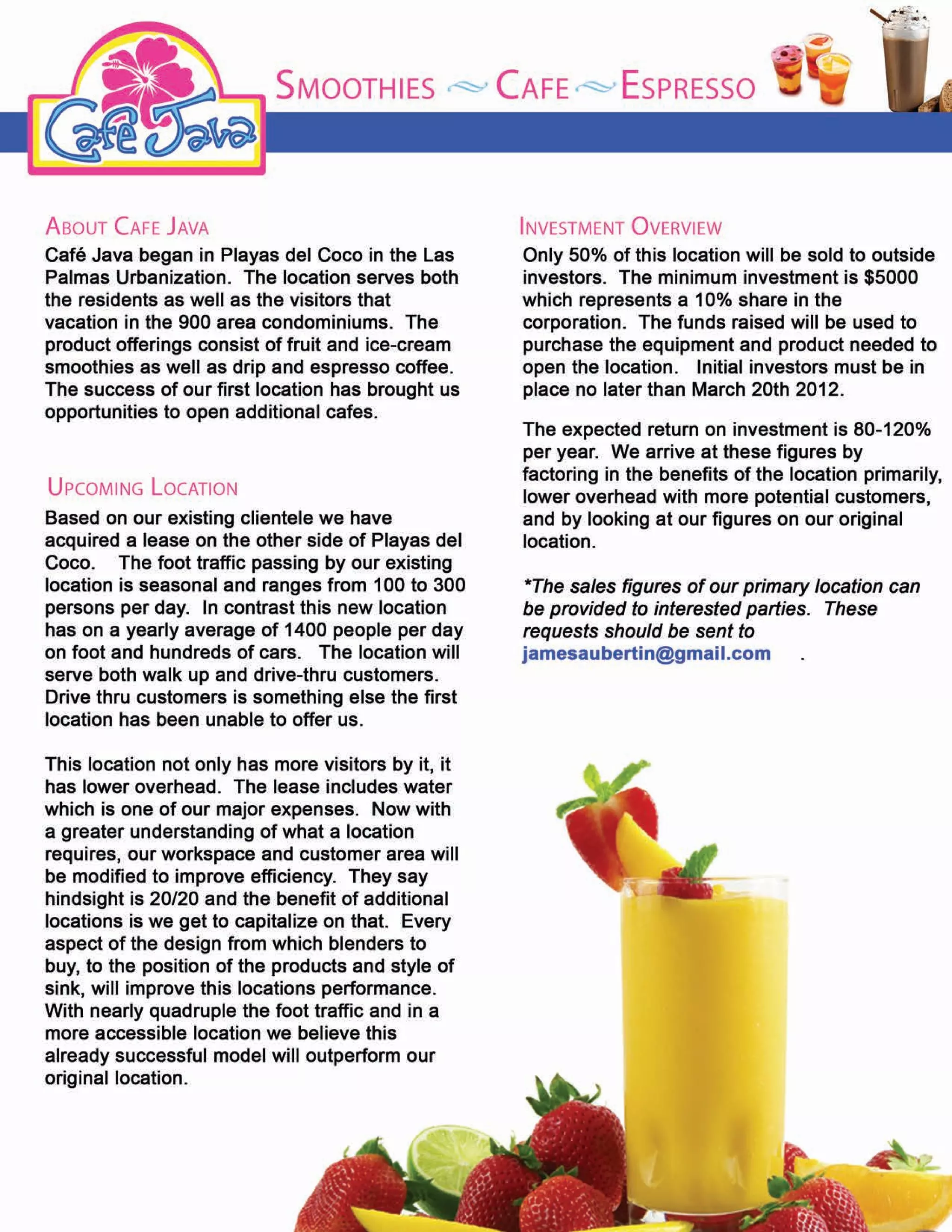 Cafe and Smoothie investment opportunity in Playas del Coco, Costa Rica