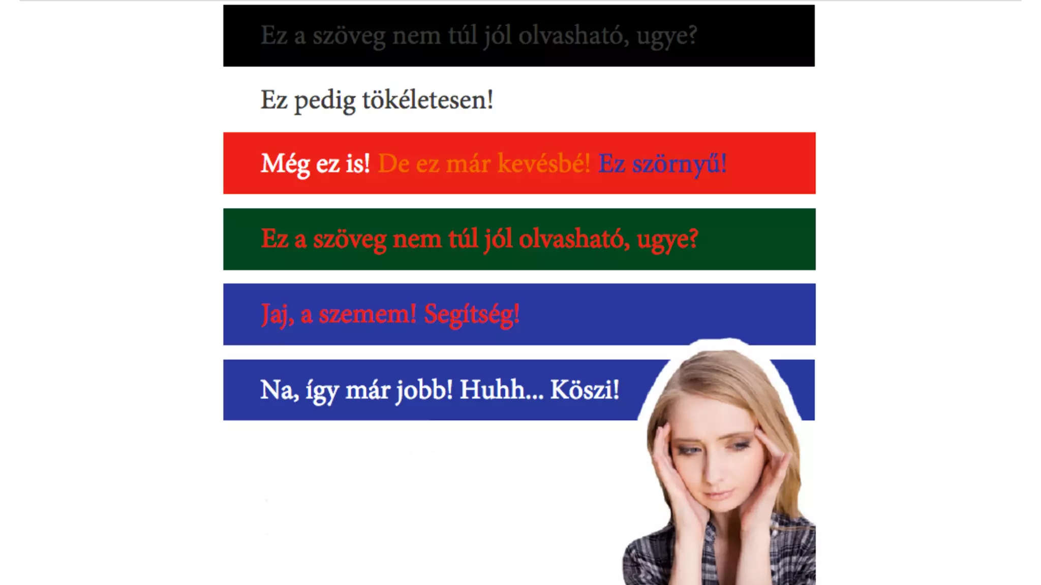 a szöveges tartalmaknál viszont kerüld a sok színt,