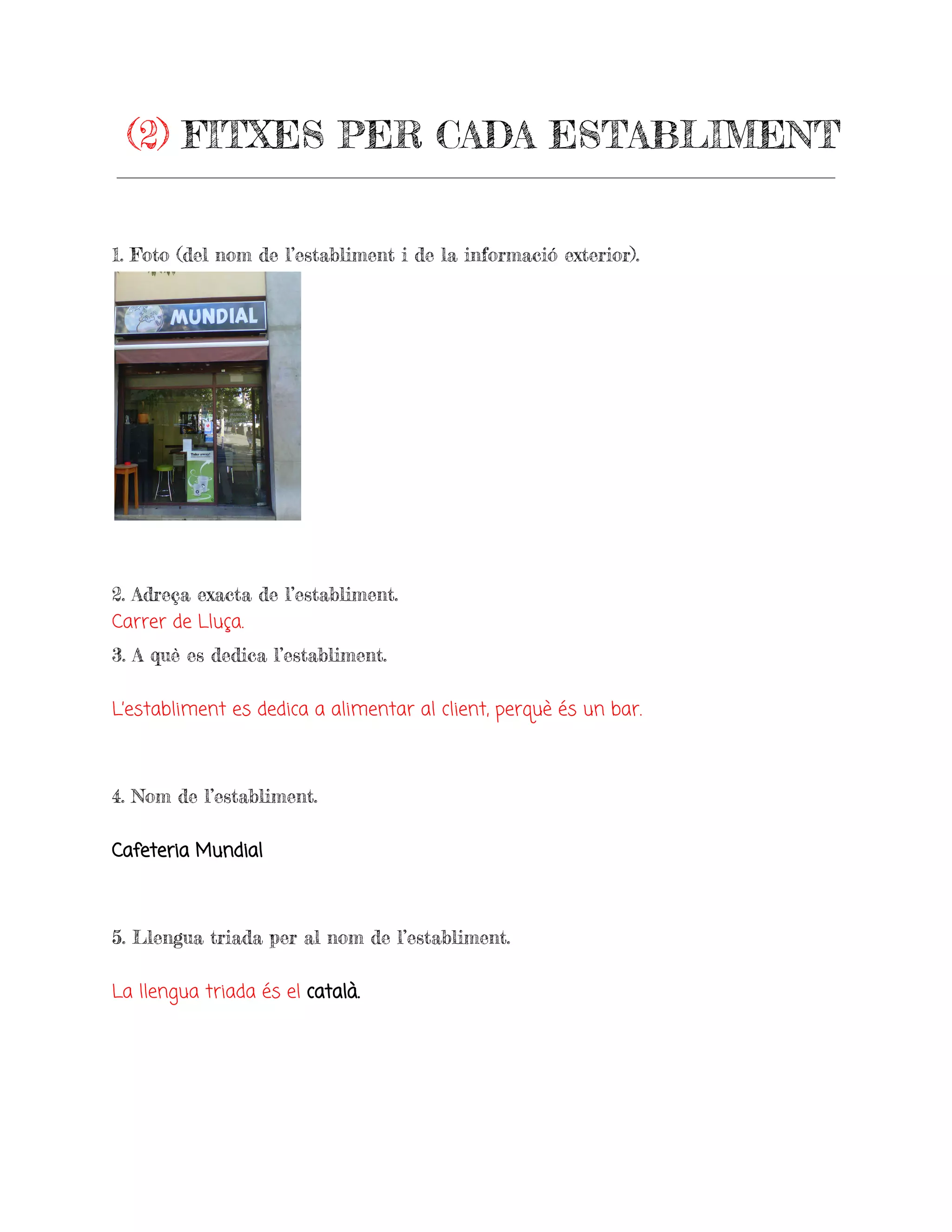1. Foto (del nom de l’establiment i de la informació exterior).