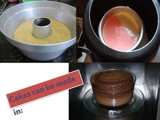The history of cakes can be traced back to ancient times. Early cakes originated from breads and were often fried or cheesecakes. In ancient Rome, cakes were bread dough enriched with ingredients like butter, eggs, and honey. During the Renaissance, sponge cakes leavened with beaten eggs were developed, possibly first in Spain. Modern cakes are typically sweet baked desserts that can include ingredients like fruit, nuts, extracts, icing, and decorations. Cake making involves combining ingredients like flour, sugar, eggs, and butter then baking and often decorating the cake.