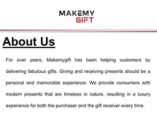MakeMyGift has been delivering exceptional gifts for years, emphasizing the personal and memorable nature of giving and receiving presents. They specialize in cake delivery services in Canada and Toronto, offering a range of delicious cakes for special occasions. Their goal is to provide a luxury experience for both the gift giver and recipient.