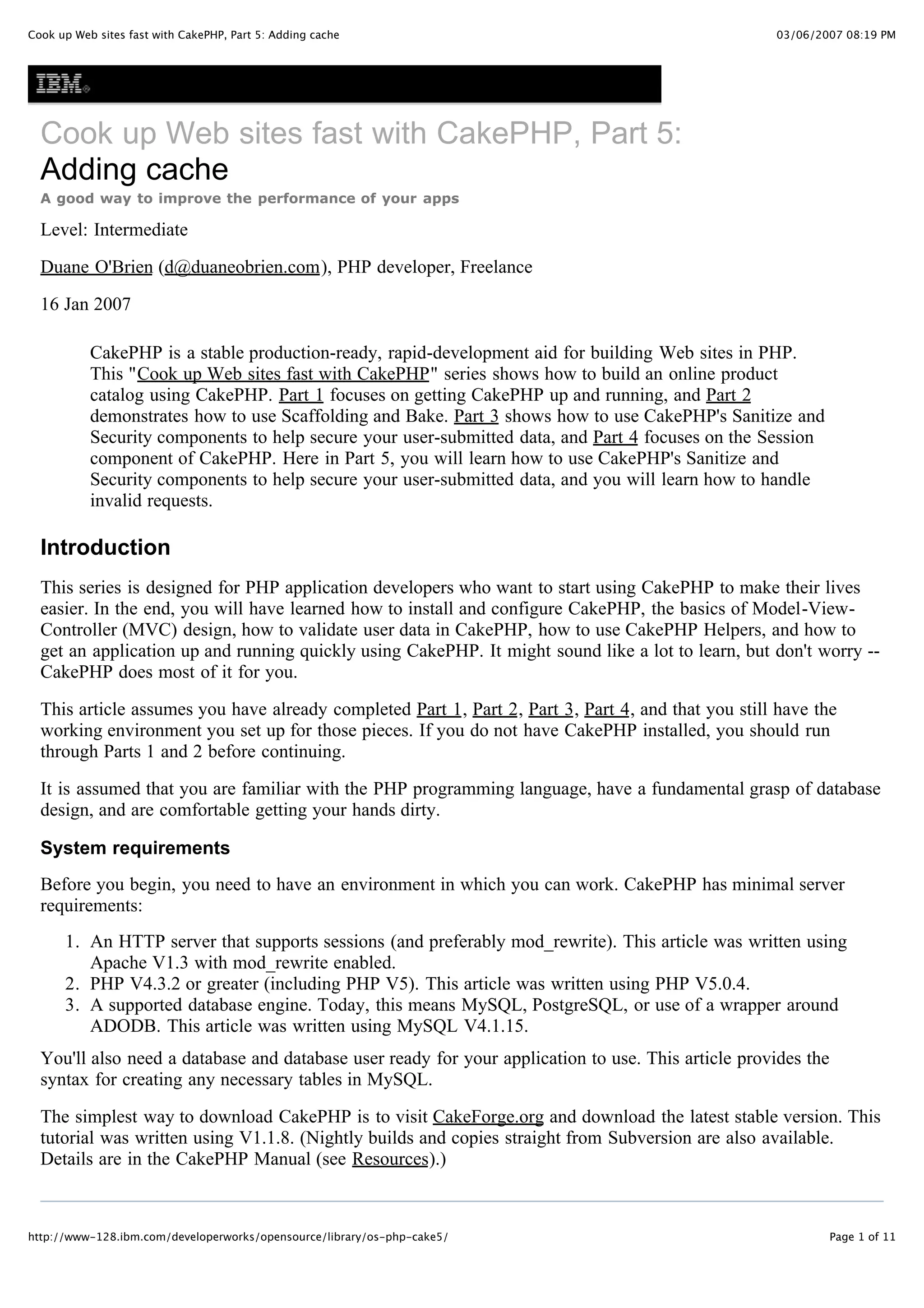This document summarizes part 5 of a tutorial series on building a web application using CakePHP. It discusses adding caching capabilities to improve performance. Specifically, it introduces the concept of caching by storing previously generated content to serve subsequent identical requests faster without regenerating the content. The document provides examples of adding a "Remove from Favorites" link to a product listing when viewing a user's favorites, and code samples for implementing the necessary controller actions and views.