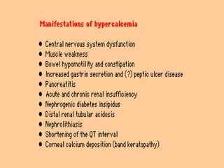 This document discusses calcium homeostasis and its regulation in the human body. It covers the following key points: