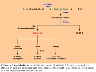 - Vitamin D aids calcium absorption from the gut and reabsorption from kidneys. The active form is produced by PTH and kidney enzymes. Together with PTH, vitamin