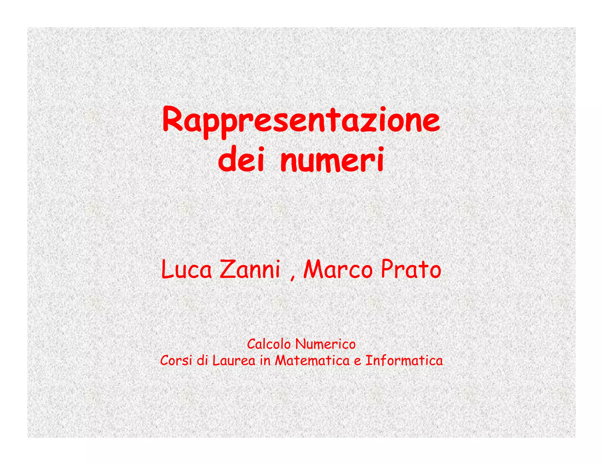 Il documento tratta del calcolo numerico, evidenziando l'importanza di sviluppare algoritmi per risolvere problemi matematici in modo efficiente e preciso. Vengono discussi concetti fondamentali come la rappresentazione dei numeri, le operazioni al calcolatore e la propagazione degli errori. L'analisi include anche diversi metodi di conversione tra sistemi numerici, con esempi pratici di rappresentazione in varie basi.