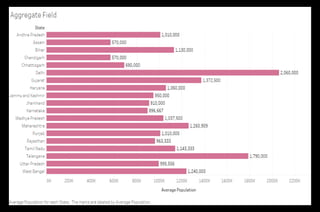 The document provides an overview of creating calculated fields in Tableau 2019.3.0, detailing various types such as numerical, date, aggregate, string, and logical fields using a life expectancy dataset. It includes step-by-step instructions for creating each field type and visualizations like bar graphs based on the calculated data. Additionally, it outlines the retention of original data while creating new fields for enhanced data visualization.