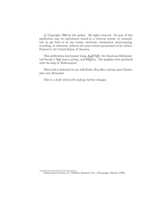 This document is a draft of a textbook titled "Applied Calculus" written by Karl Heinz Dovermann, a professor of mathematics at the University of Hawaii. It is dedicated to his wife and sons. The textbook covers topics in calculus including definitions of derivatives, integrals, and applications of calculus through 12 chapters with sections on background concepts, derivatives, applications of derivatives, integration, and prerequisites from precalculus.