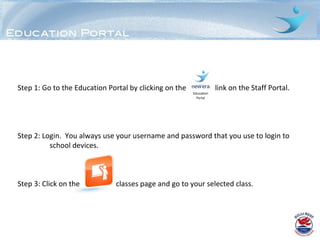 To add a calendar page to a class on the Education Portal, a teacher must first log in to the Staff Portal and select the desired class. They then click the plus sign and "More", followed by "Collaboration" and "Add" next to the "Calendar" option. While the calendar can be used like a digital diary, entries will only be visible in that subject's calendar for now. The main current use is to display the date for students to write in their books.