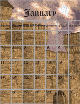 Thursday Friday Saturday January 1. 2. 3. 4. 5. 6. 7. 8. 9. 10. 11. 12. 13. 14. 15. 16. 17. 18. 19. 20. 21. 22. 23. 24. 25. 26. 27. 28. 29. 30. 31.