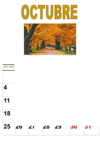 DILLUNS DIMARTS DIMECRESDIJOUS DIVENDRES DISSABTE DIUMENGE