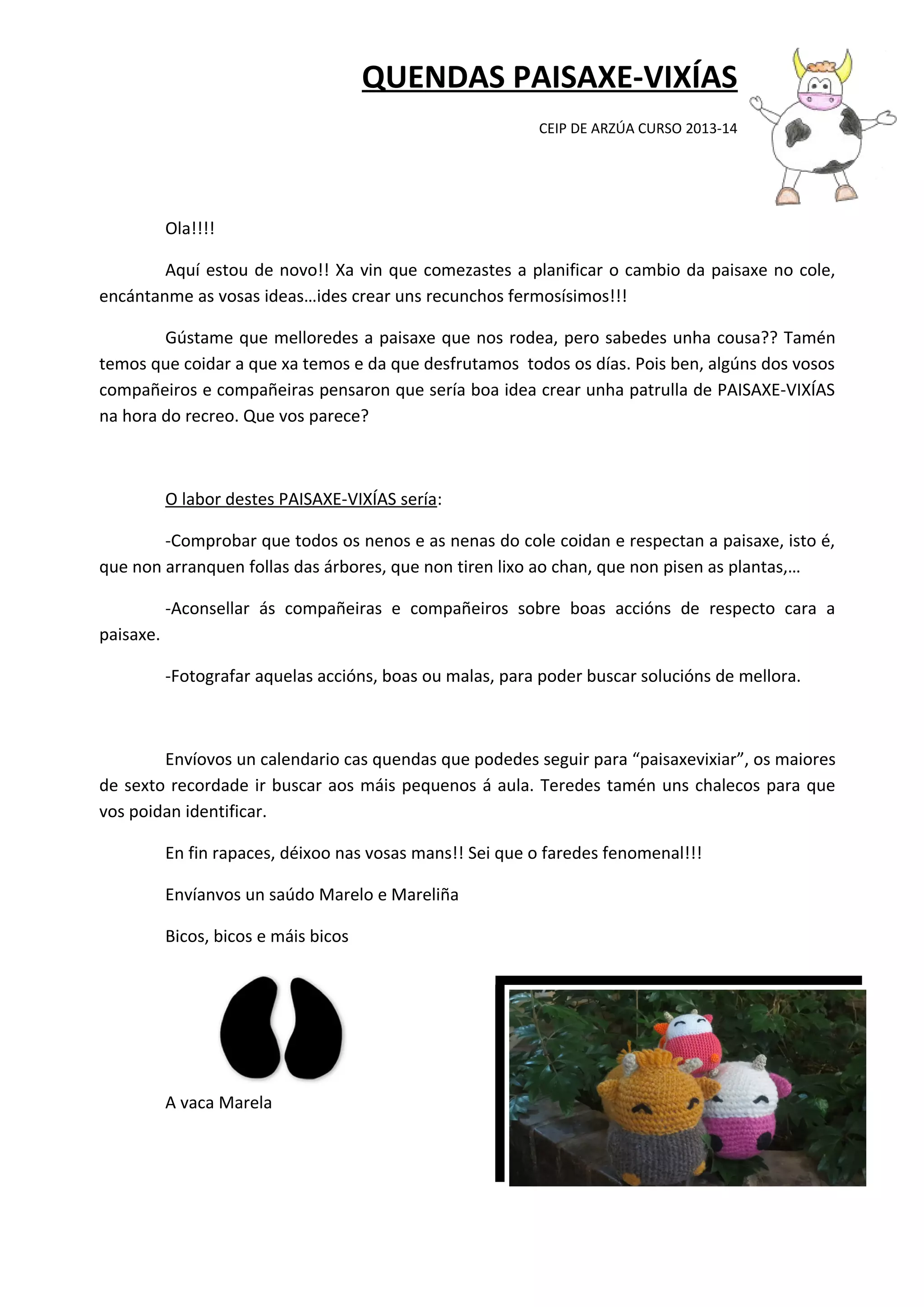 -Comprobar que todos os nenos e as nenas do cole coidan e respectan a paisaxe, isto é,