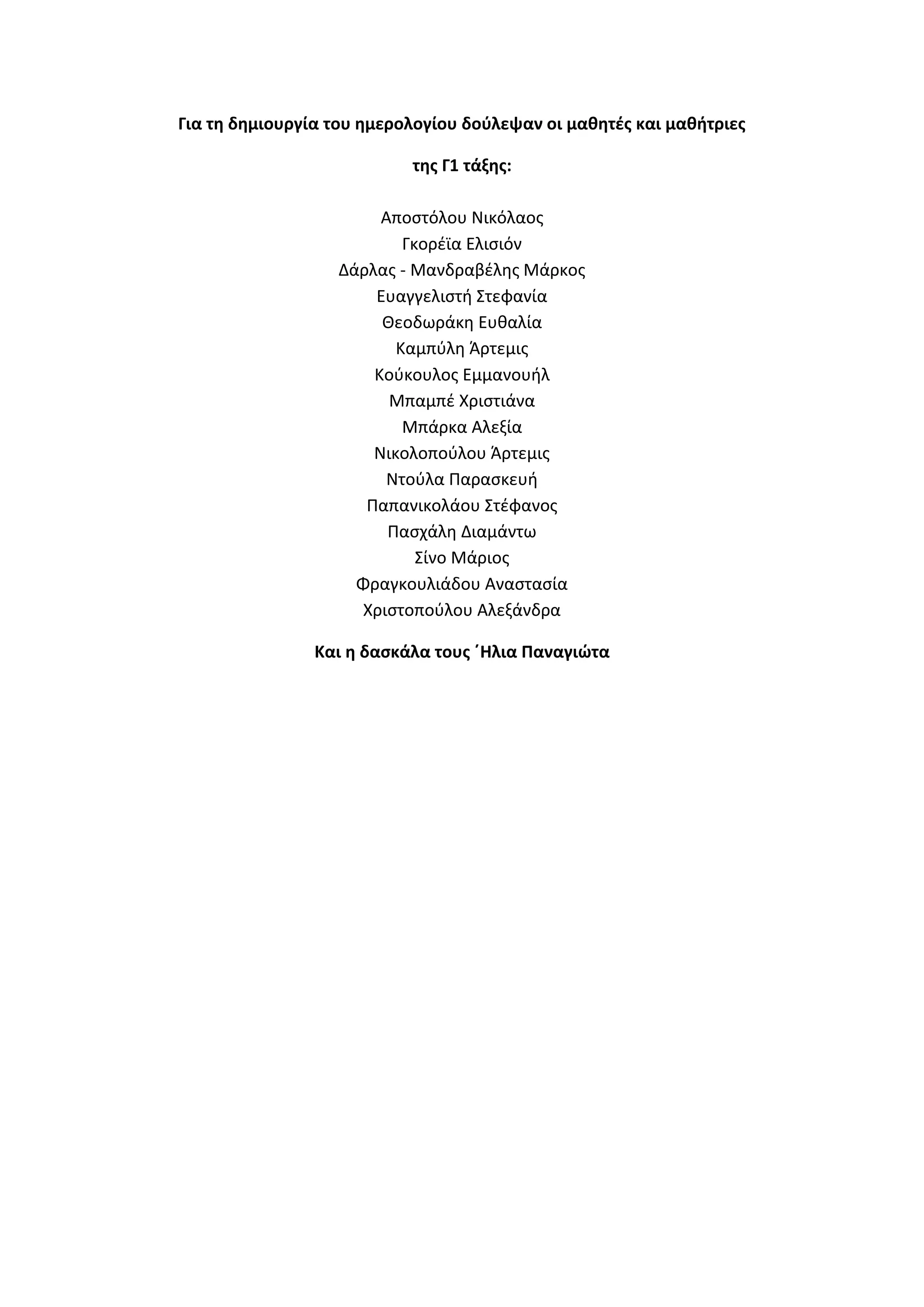 Για τη δημιουργίατου ημερολογίου δοφλεψαν οι μαθητζς και μαθήτριες