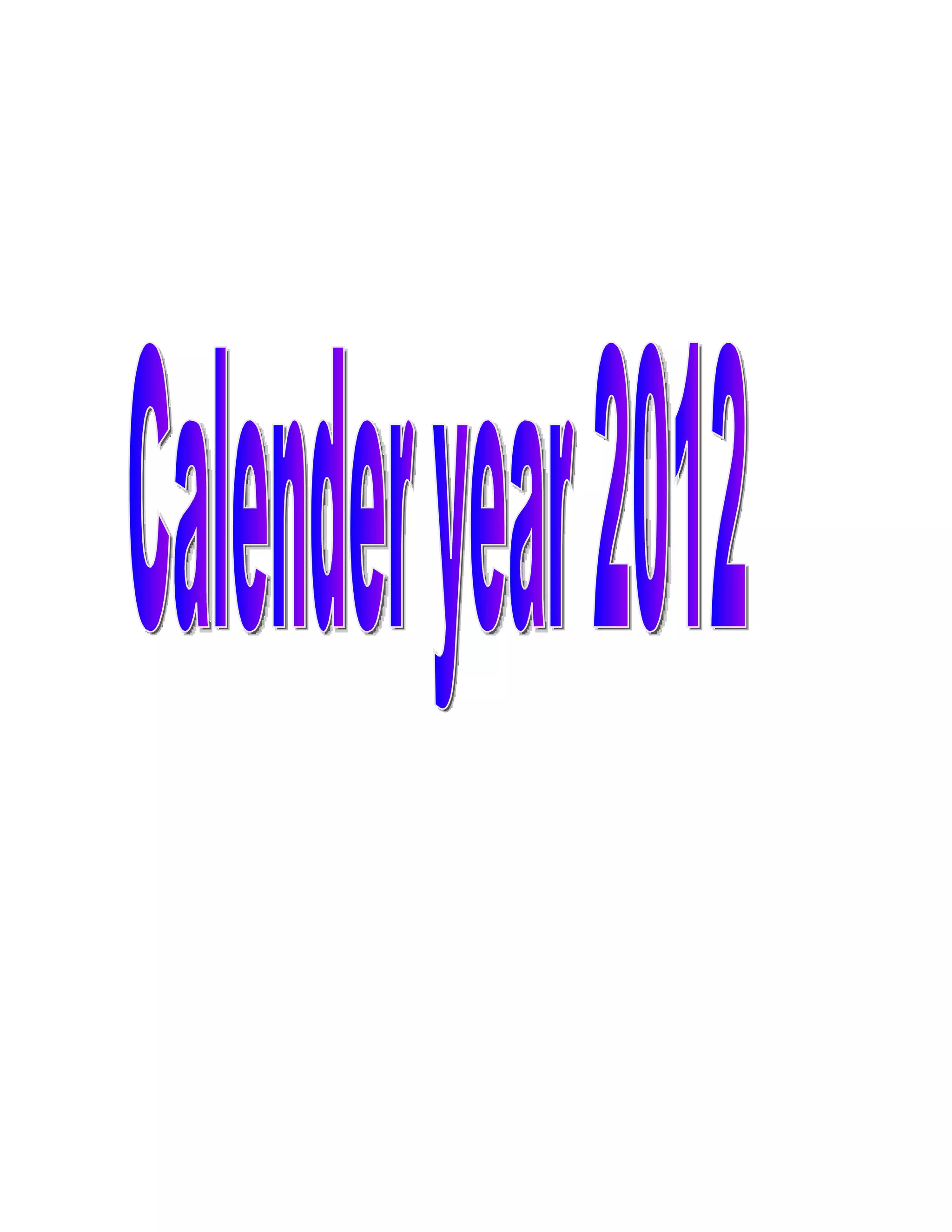 The document displays a calendar for each month of the year from January to December. Each calendar shows the days of the week and dates for that month in a grid layout.