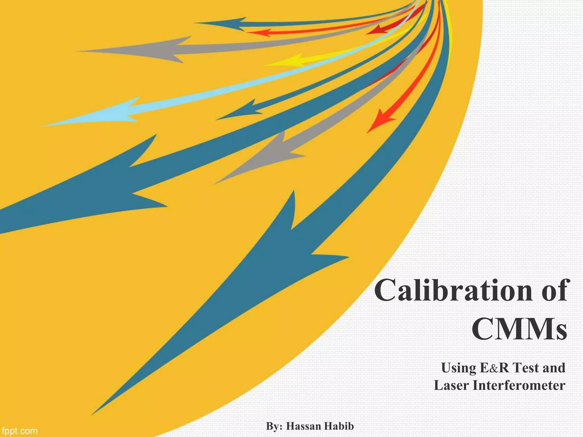 The document discusses the calibration of Coordinate Measuring Machines (CMMs) using the E&R test and laser interferometry, detailing the principles of CMM operation and the calibration standards involved. It outlines the calibration procedures, types of errors, and the significance of ensuring measurement accuracy through regular calibration according to established guidelines. Additionally, the document covers the setup and operation of laser interferometers for precise measurement and compensation of geometric deviations in CMMs.