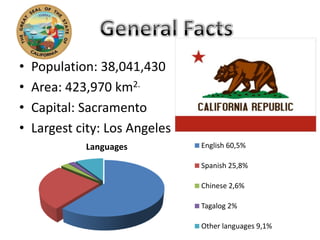 California has 58 counties and over 38 million residents. It contains the lowest point in the contiguous US, Badwater Basin in Death Valley, at -282 feet below sea level. Silicon Valley is home to many large technology companies and the San Diego Zoo is notable for its population of giant pandas. The San Francisco 49ers football team competes in the National Football League.