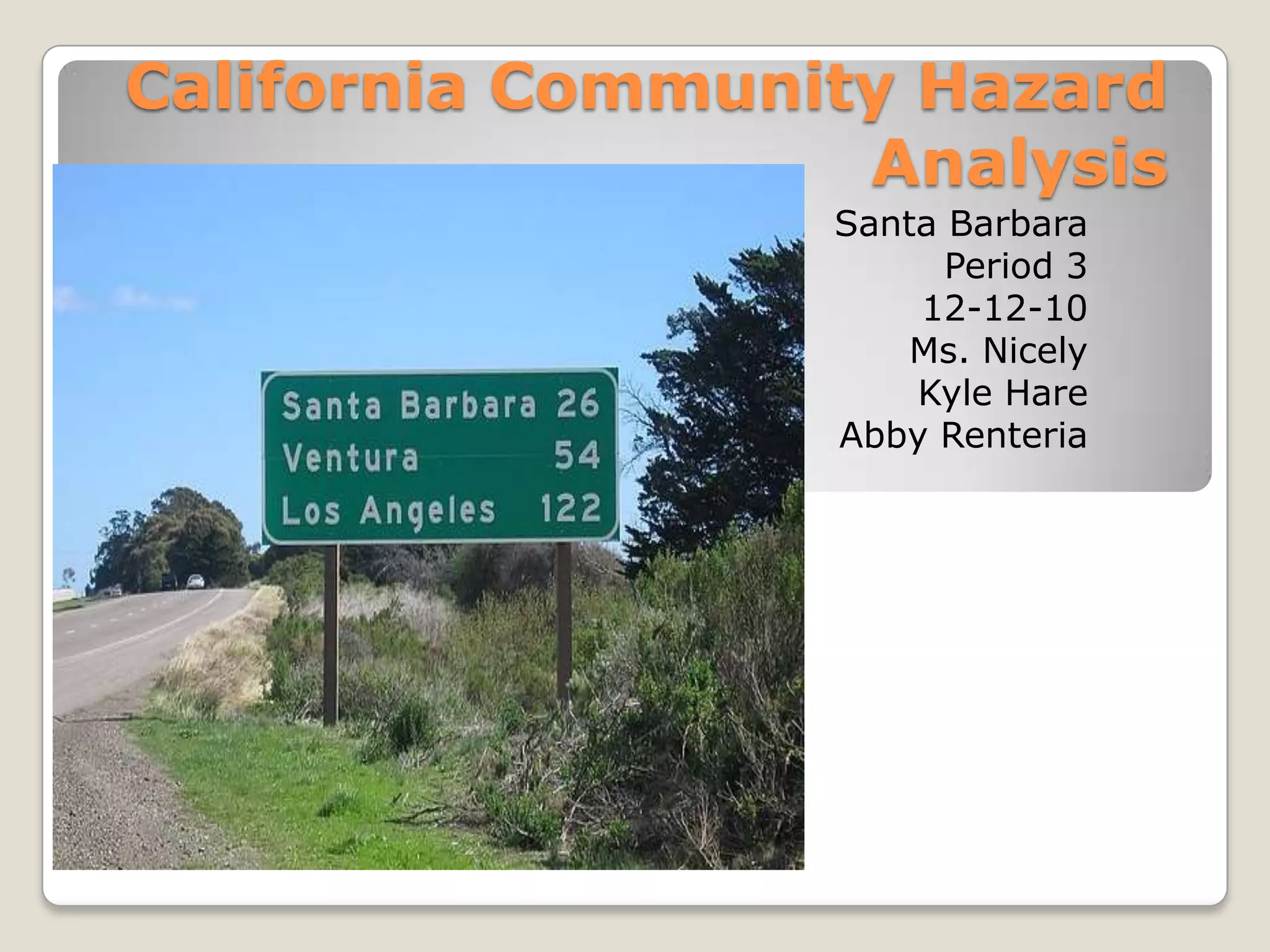 Santa Barbara, California is located on beautiful beaches along the southern coast. However, it faces natural hazards such as fires, landslides, tsunamis, and drought. Home prices are expensive due to the desirable location and climate, with the median income around $40,000-$50,000. Major employers include the University of California Santa Barbara and local hospitals. Residents receive power and water from a fuel cell project and desalination plant to cope with drought risks.