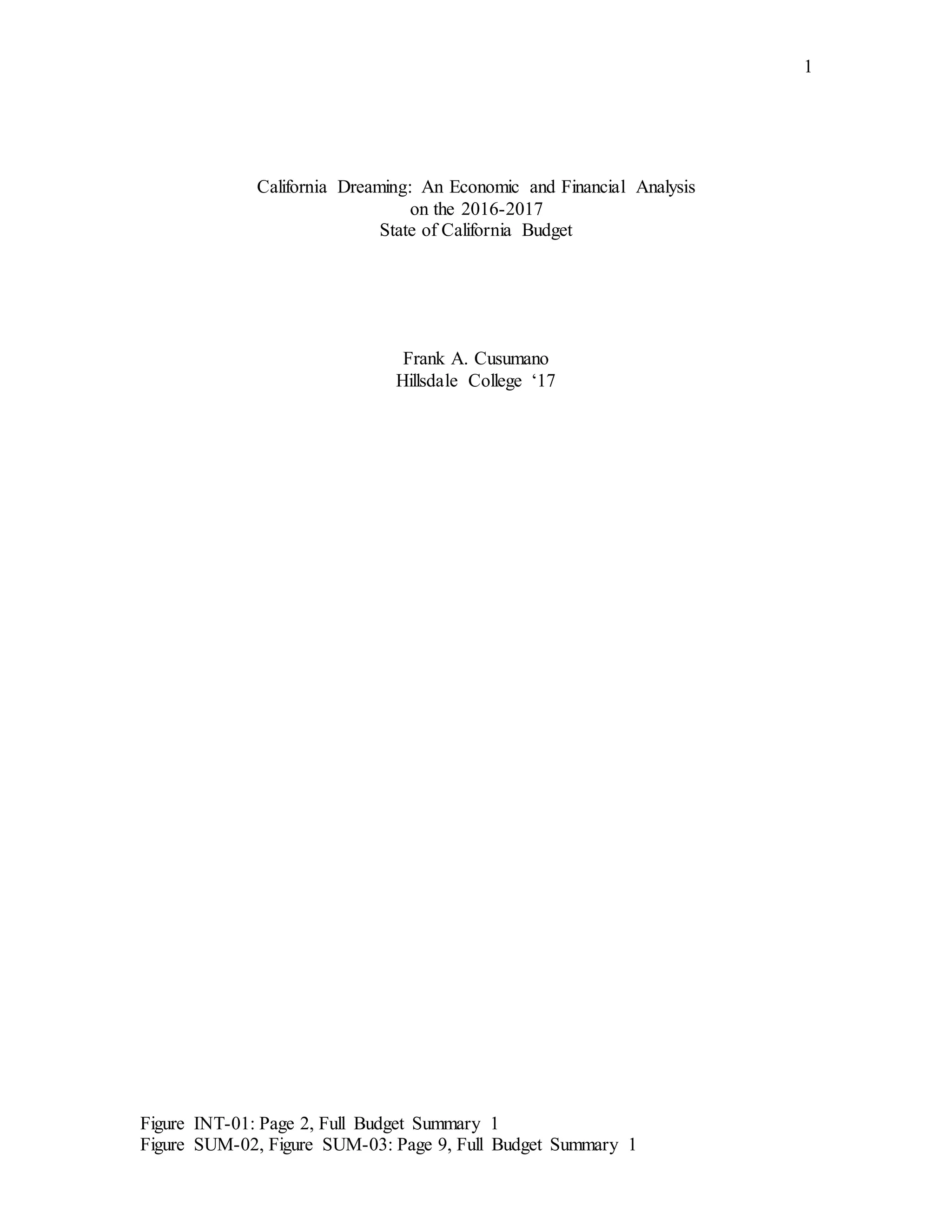 1) The document analyzes the 2016-2017 budget summaries from the State of California. It finds that while the state is claiming to have balanced its budget, this is likely temporary due to reliance on volatile income tax revenues.