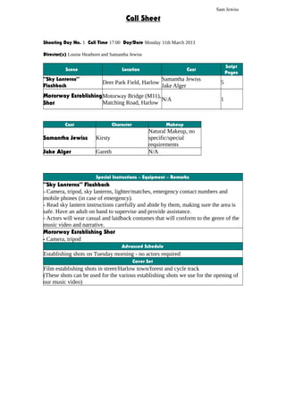 Call Sheet