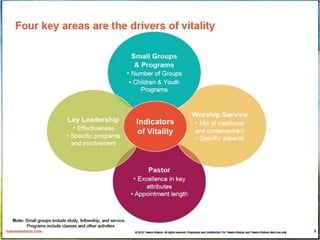 This document outlines a plan to develop vital and healthy congregations through revitalizing existing congregations, starting new congregations, and changing church culture and processes to better support congregational vitality. It discusses engaging key leaders and the congregation through prayer, worship, study and response to discern a church's core values and guiding beliefs in order to change culture and reach the unchurched. Resources provided can help local churches increase their vitality by implementing best practices and developing a ministry plan focused on making disciples and transforming the world.