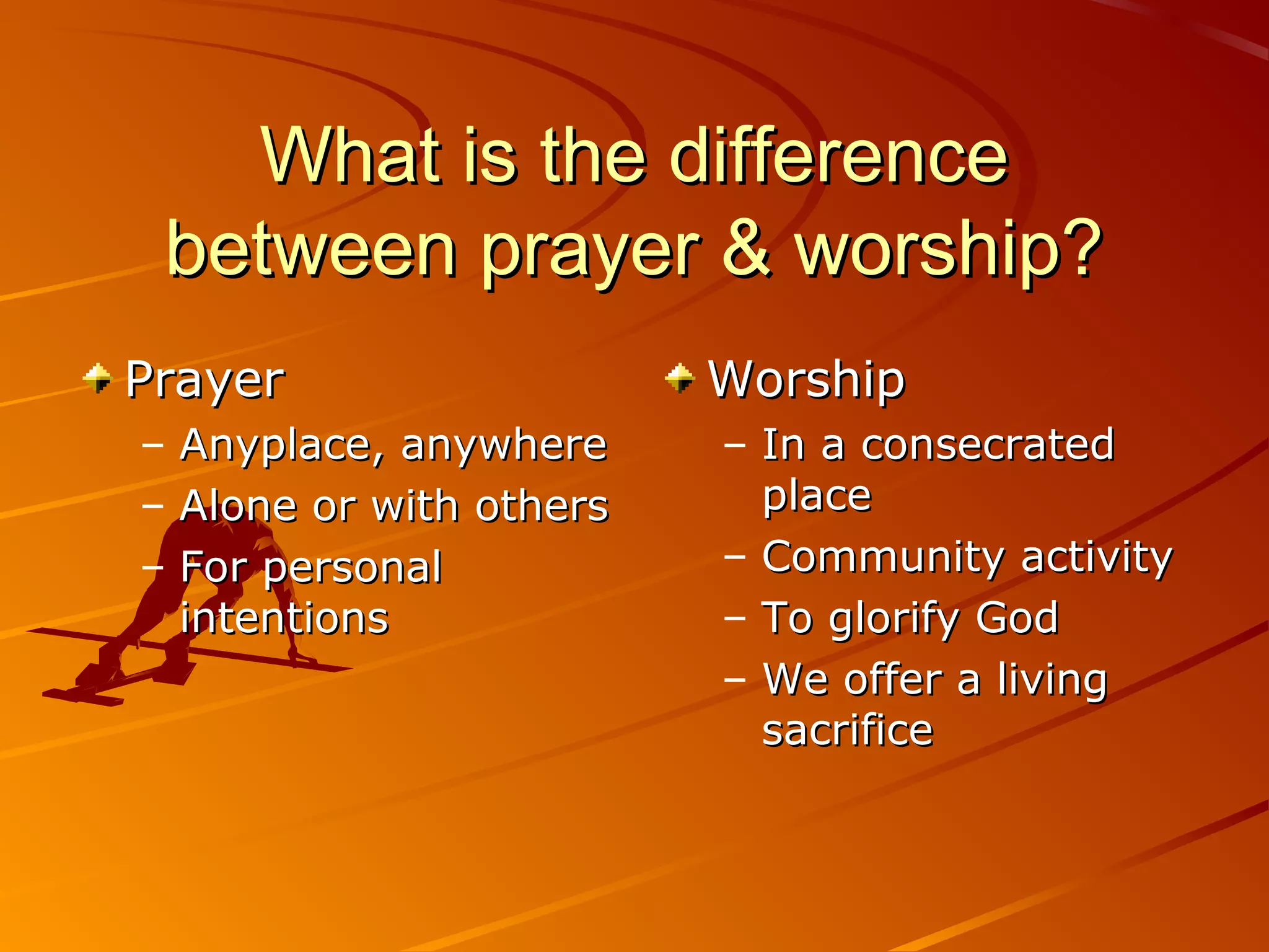 This document discusses the differences between prayer and worship, and emphasizes that Sunday Mass is an opportunity for communal worship where we offer ourselves to God as a living sacrifice, as Jesus did. It explores what it means to live a Eucharistic life and be part of a Eucharistic community, noting that true community requires love, care, and sharing without selfishness. Several passages from Scripture are presented that highlight the importance of love - for God, for neighbor, and even for enemies. Building community and developing human relationships requires understanding each person as a unique gift and removing superficial "wrappers" to see the gift within.