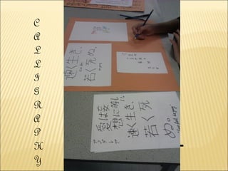 2) Created graffiti artwork inspired by quotes, signs, artists, words, and imagery related to dance, love, clothing, world peace, music, and phrases.