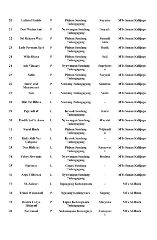 Daftar calon peserta Bidik Prestasi MA Al Ma'arif Pon Panggung Tulungagung tahun pelajaran 2013-2014. Terdapat 115 siswa yang berasal dari berbagai sekolah Islam di Tulungagung dan sekitarnya. Mereka terdiri dari siswa putra dan putri yang memiliki prestasi akademik dan non akademik yang baik.