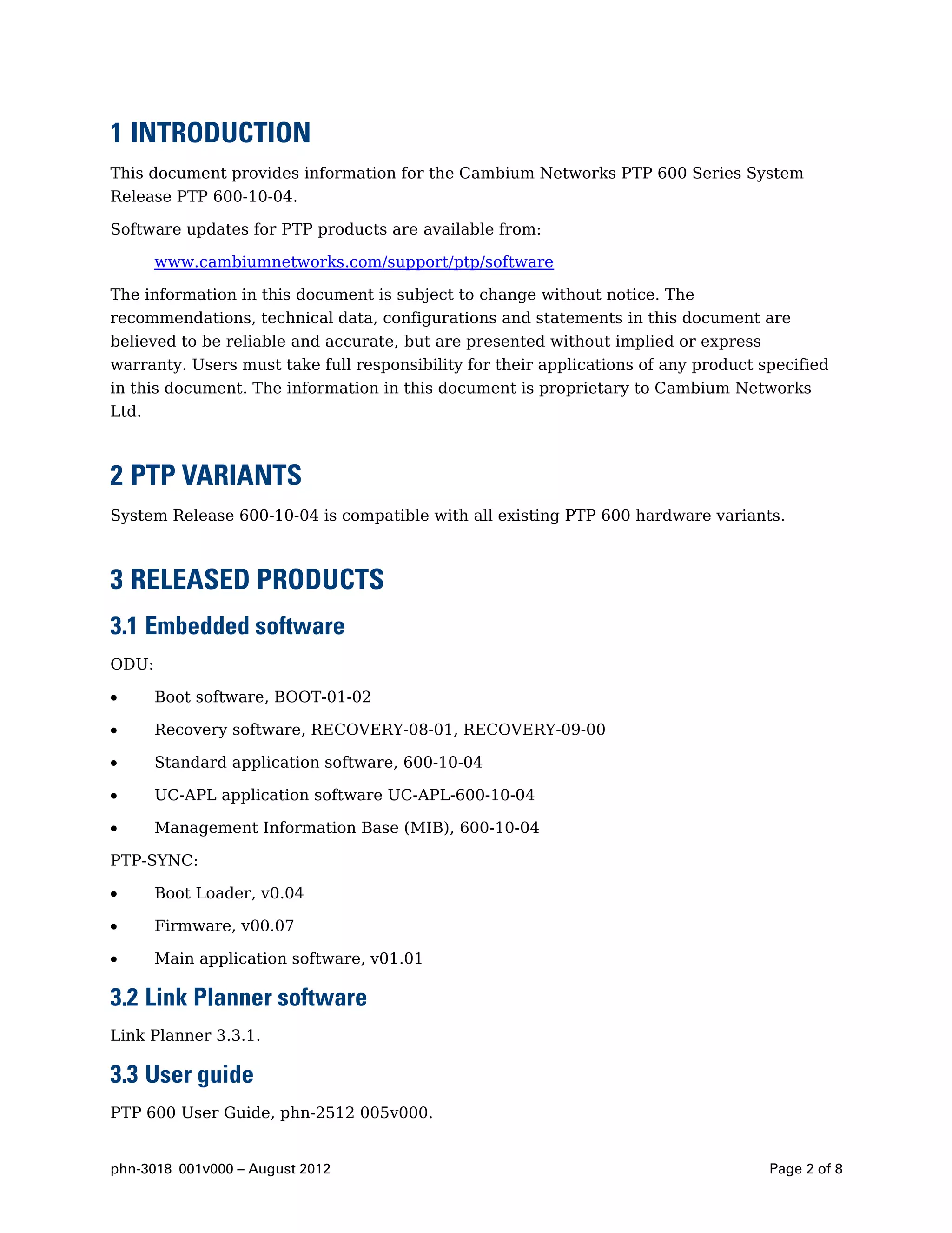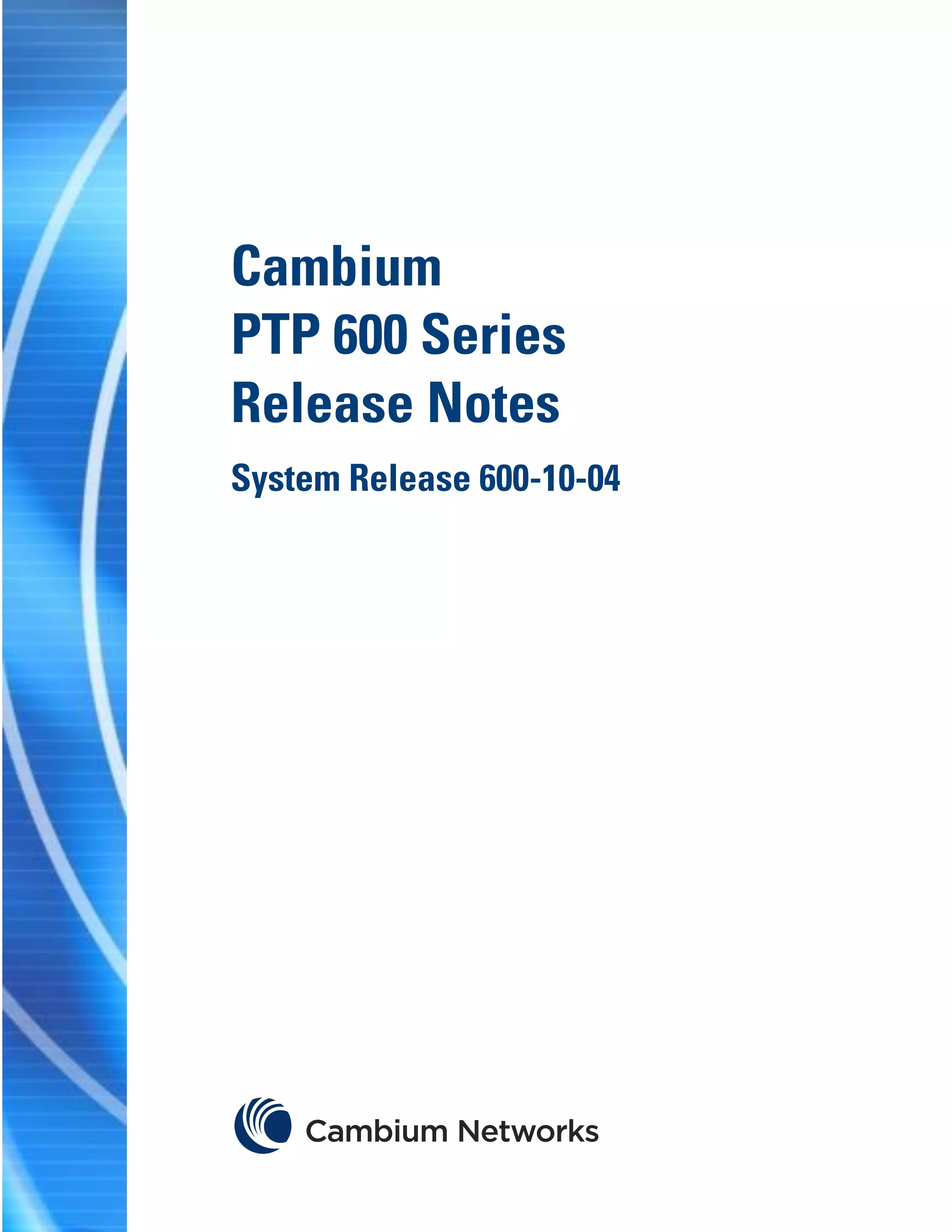 This document provides release notes for Cambium Networks PTP 600 Series System Release 600-10-04. Key updates include: