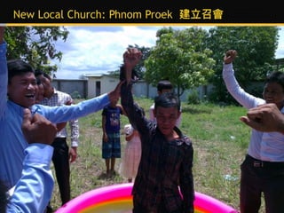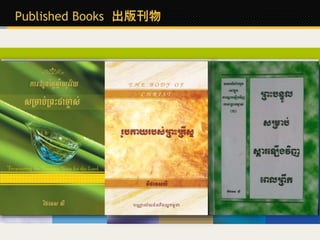 This document lists the number of books donated by various churches in Cambodia to elders in different villages. A total of 100 books were donated by Saints church to elders in Kampong Cham Phnom Proek village, while 25 books each were donated by Elders and LMA churches to the same village. Smaller numbers of books ranging from 15 to 30 were donated by other churches to elders in additional villages.