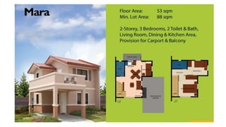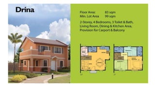 Camella Tanza is a large-scale residential project in Cavite, covering 500 hectares and featuring a 20-hectare commercial area with various amenities. The development offers a variety of house units with detailed financial options including down payments and monthly amortizations that vary depending on the chosen unit and location. The community is well-connected to key transportation routes and local services, enhancing accessibility and convenience for residents.