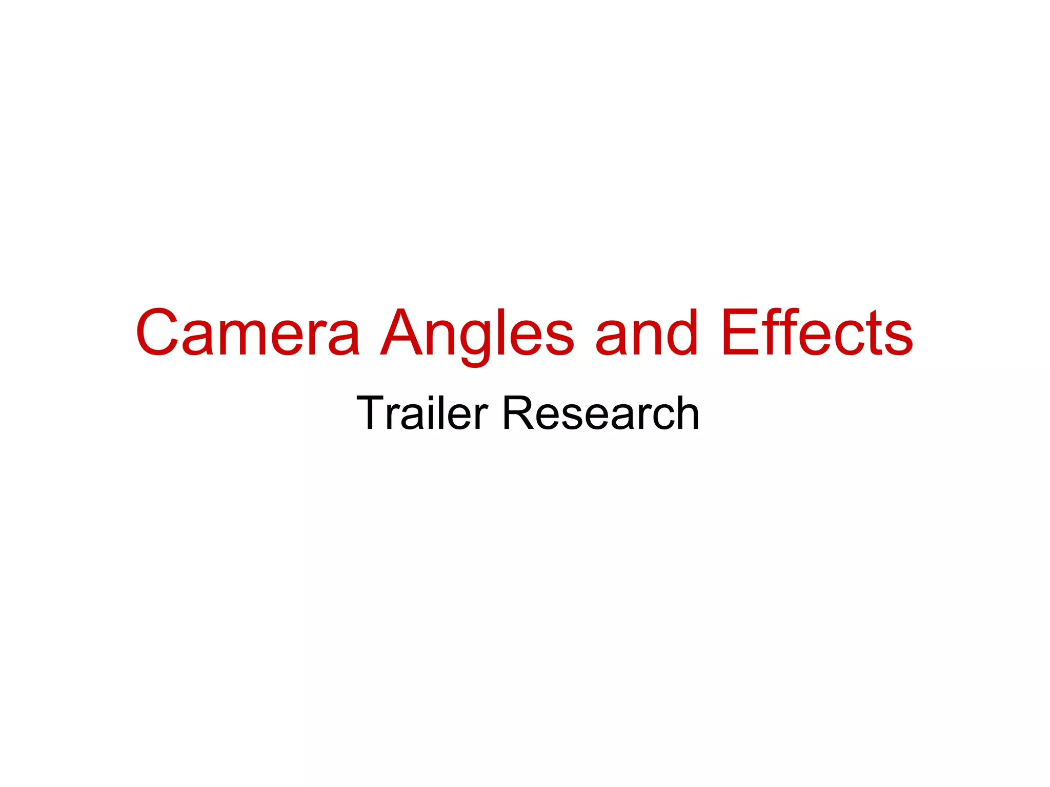 This document discusses various camera techniques used in horror movie trailers such as establishing shots, close-ups, point-of-view shots, pans, tracking shots, hand-held camera shots, tilts, zooms, static shots, fades to black/white, and over the shoulder shots. These techniques are used to build tension, make audiences uncomfortable, show characters' emotions, emphasize settings or characters, create a sense of chaos, and maintain flow within trailers. Examples are given of how each technique has been effectively used in popular horror movie trailers.