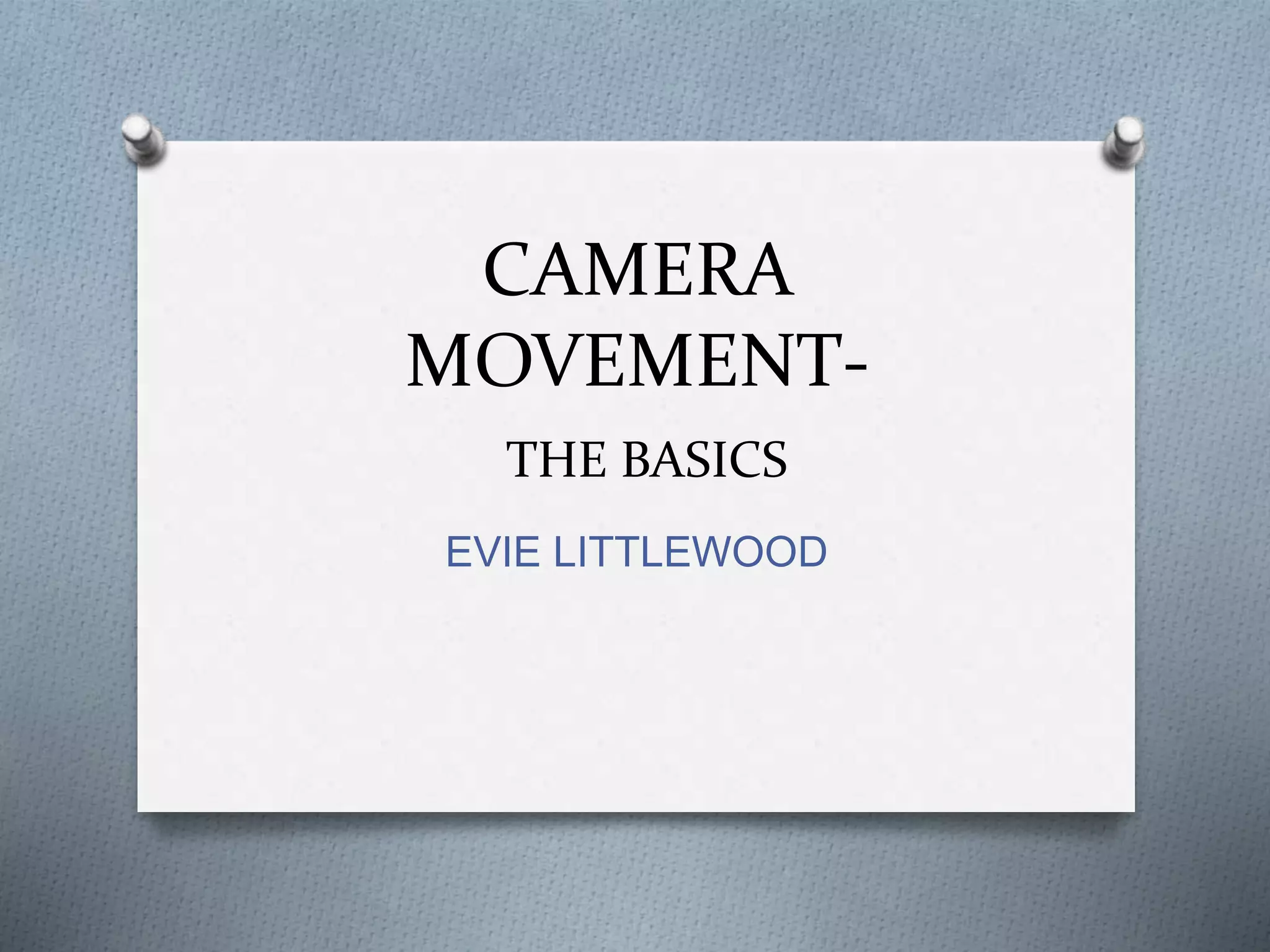 The document discusses different types of camera movements that can be used when filming including panning, tilting, dolly shots, crane shots, handheld shots, low angle shots, and high angle shots. Panning involves horizontal movement of the camera to follow action while tilting is vertical camera movement that can indicate a character's importance. A dolly shot moves the entire camera forward and back on a track to follow walking and talking. Crane shots use a camera mounted on a crane to gain high or establishing angles. Handheld shots follow action but lack professionalism while low and high angle shots emphasize the size and power and innocence of characters respectively.