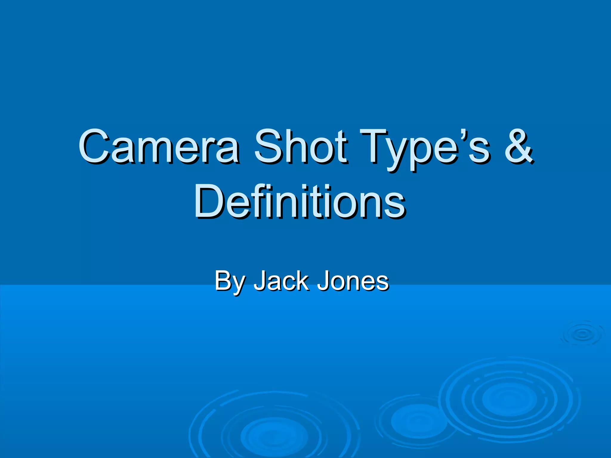 An establishing shot provides a wide view of a scene. A tracking or dolly shot moves the camera alongside moving subjects. A crane shot is like a tracking shot but uses a crane to move the camera up, down, or diagonally. An aerial shot is a type of crane shot taken from a helicopter to establish the setting. A zoom lens allows the camera to move in or out of a scene quickly without physically moving the camera. A POV shot shows a scene from the perspective of a subject. A two-shot frames two people in a mid shot.