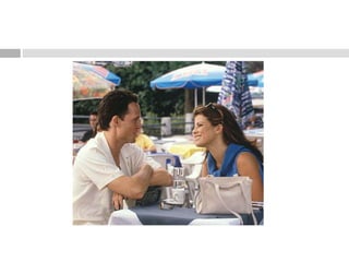 A shot is a series of frames recorded during an uninterrupted period of filming. There are various types of shots defined by their camera distance, angle, and movement. Shots can be categorized as extreme long shots, long shots, mid shots, close-ups, point-of-view shots, and more. Camera angles are also used to convey meaning, such as high angles suggesting inferiority and low angles suggesting superiority. Common camera movements include panning for horizontal rotation, tilting for vertical rotation, zooming, and tracking with a dolly.