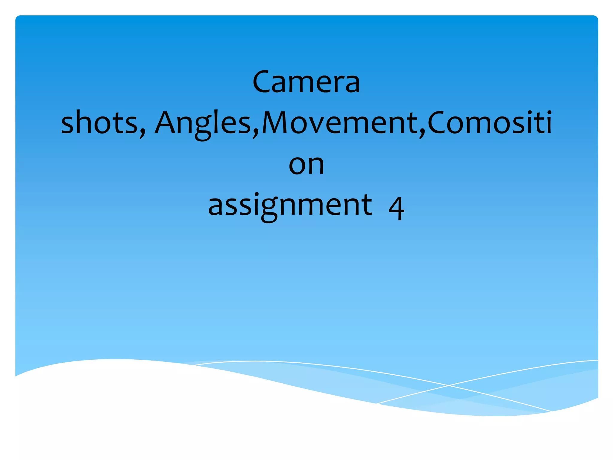 This document discusses various camera shots, angles, and movements that can be used when filming including: