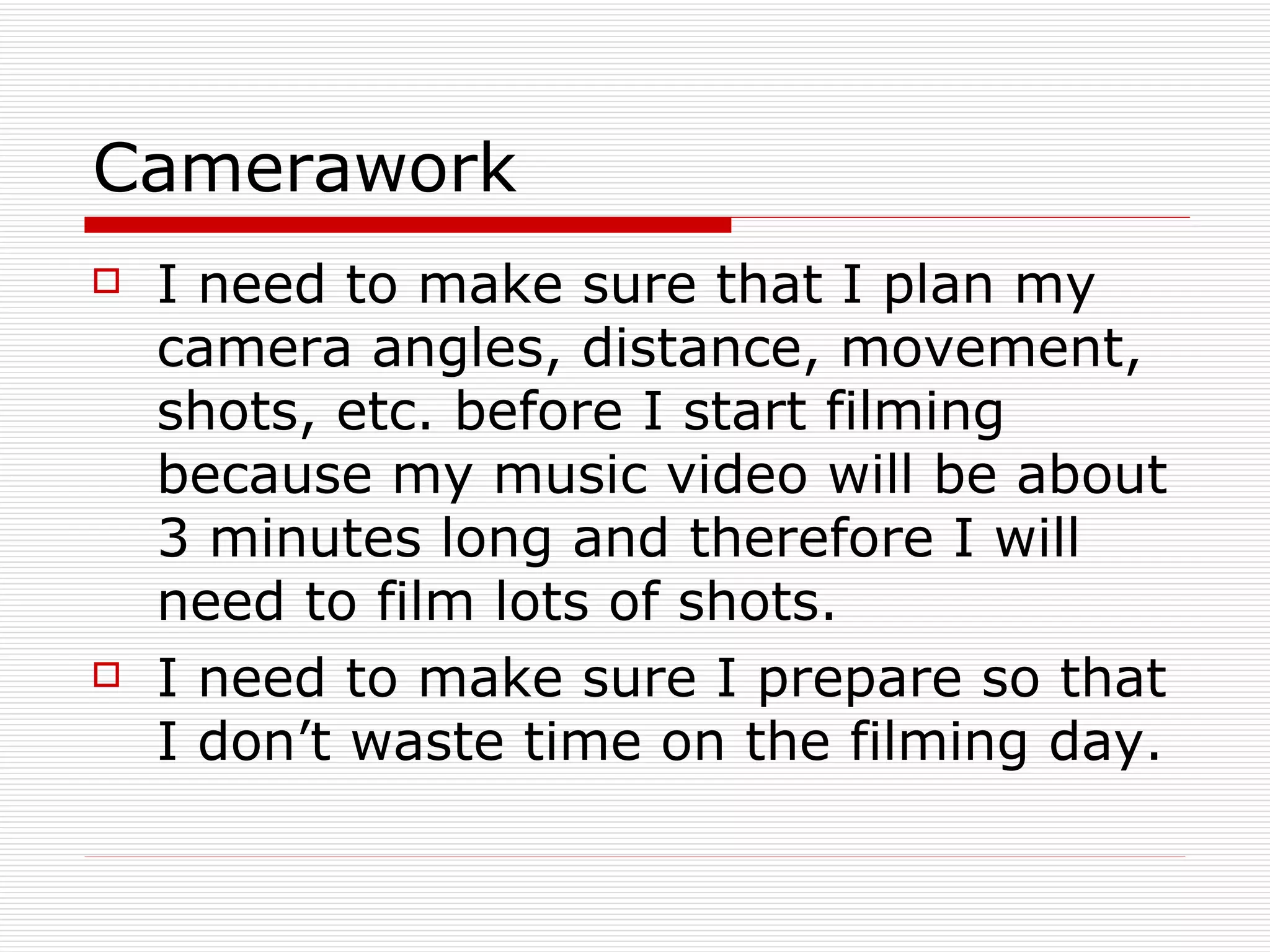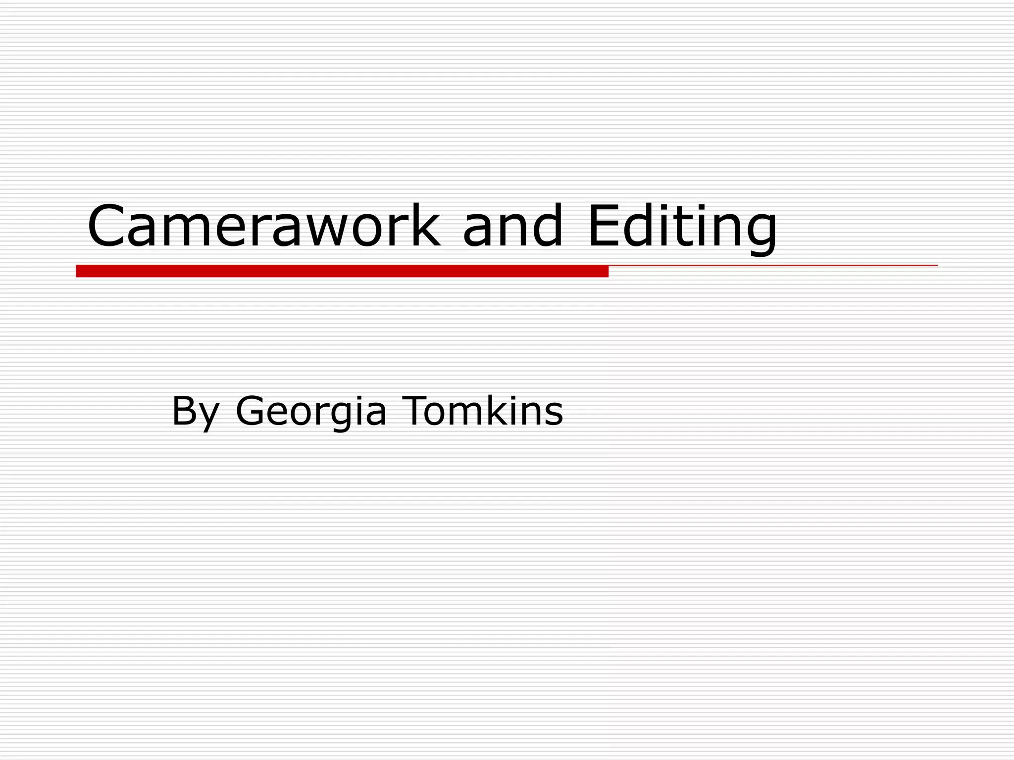 The document discusses various camera shots and editing techniques that will be used to film a music video. It plans to use high angle shots to make the subject seem small and vulnerable. Aerial and wide shots will help establish the isolated setting and lonely mood. Close-ups will show emotion and intimacy, while tracking shots follow the subject to create a feeling of being followed. Fast cutting montages and digital effects like split screens will be used to portray fragments of the story and link different characters. Speeding up or slowing down footage will help set the tone and allow the audience to reflect on the story.