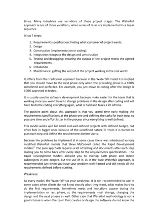This document discusses project management methodologies, specifically the Waterfall and Agile approaches. It defines a project as a task with a beginning and end that creates value or change. Project management involves planning, organizing, motivating and controlling resources to meet goals. The Waterfall model involves sequential phases of requirements, design, implementation, testing etc. It works well for small, defined projects but can fail for larger ones due to inflexibility. Agile methods allow for more flexibility and adaptation.