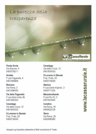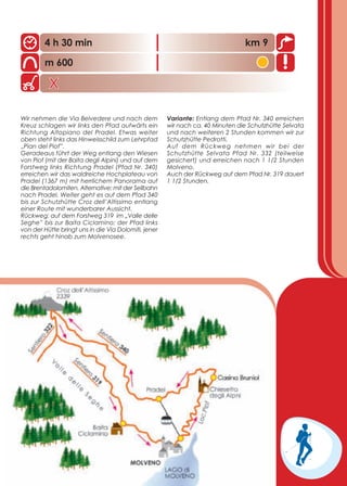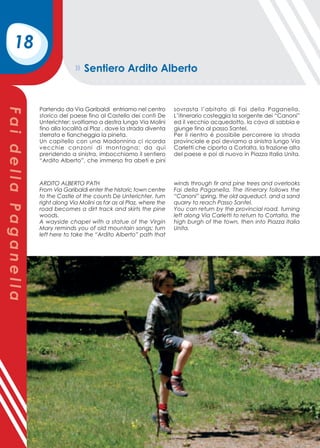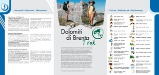 Il documento promuove il trekking e il biking nelle Dolomiti di Brenta, recentemente dichiarate patrimonio mondiale UNESCO. Propone due percorsi principali per escursionisti e bikers, adattandosi a diversi livelli di abilità. Il trekking e le escursioni in mountain bike offrono emozioni e panorami indimenticabili nel cuore del Trentino occidentale.