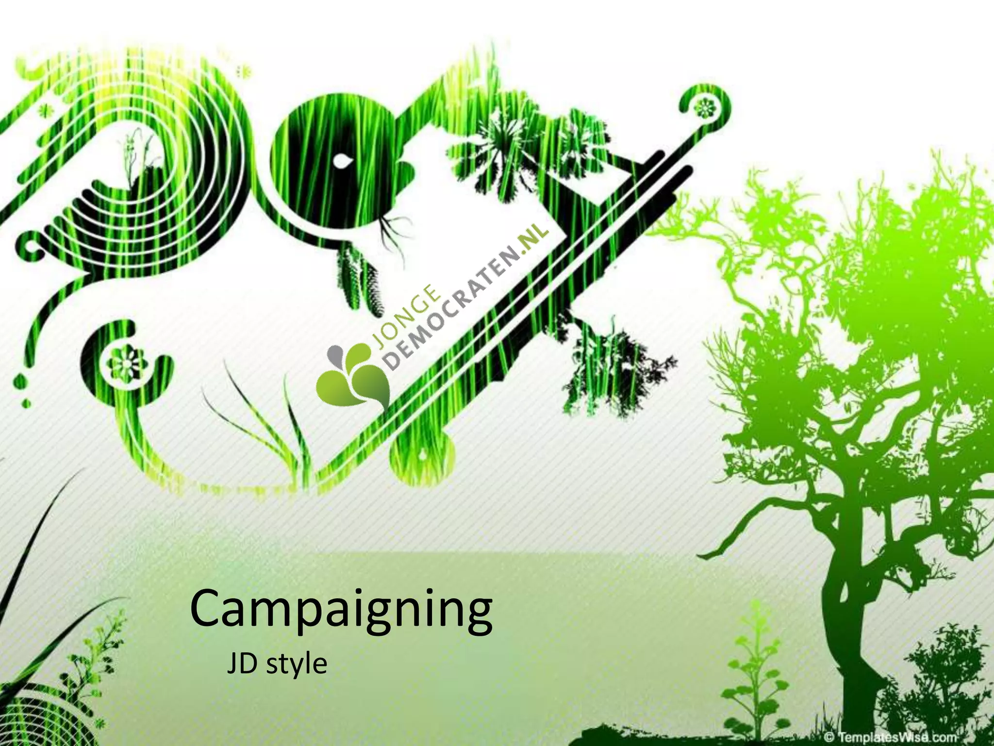 This document discusses campaigning and provides tips for how to run an effective campaign in 3 or fewer sentences. It touches on being creative with your messaging and public outreach, using money strategically, and provides examples of campaigns.