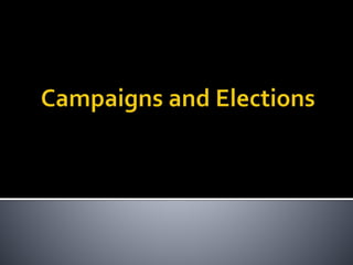 This document contains summaries of key concepts in political science: - It describes the original design of the US presidency and differences between the House and Senate. The House represents proportional population, sits for 2 years. The Senate gives 2 seats to each state, terms are staggered. - It defines types of campaign funding: direct "hard money" donations and less regulated "soft money". - It explains swing states that can support either party, and microtargeting of specific demographic ads. - It outlines valence, position, and wedge issues that candidates emphasize. - It lists key factors that influence elections: the economy, presidential popularity, time in office of the incumbent party. - It defines party identification and the coat