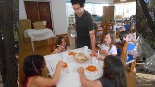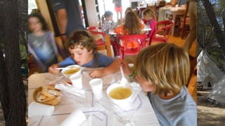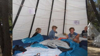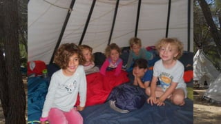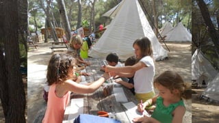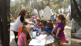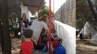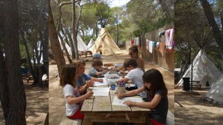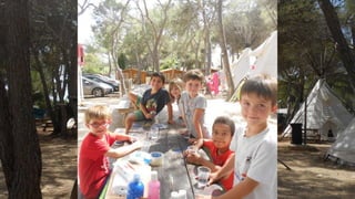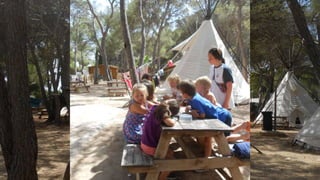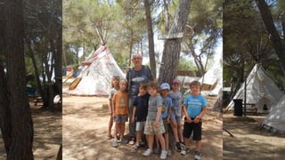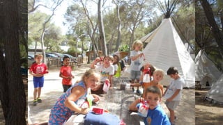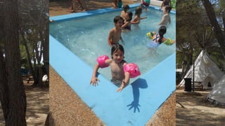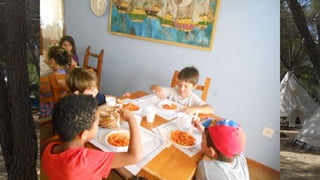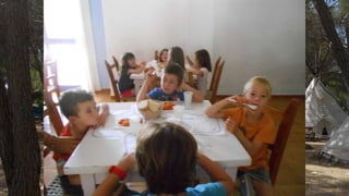 The document summarizes the daily activities at a summer camp on June 13th and 14th. It describes arriving at the camp and having breakfast, going to the pool, setting up tents, having lunch and free time, snacks before workshops, preparing and having workshops, dinner where they changed into pajamas, playing afterwards, saying goodnight and going to sleep, waking up the next morning and having breakfast, and reflecting that they had a great time.