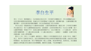 李白,字太白,號青蓮居士。生於唐武后長安元年,卒於唐代宗寶應元年。李白祖藉隴西成紀, 先世於隋末避罪流徒到西域。他誕生於中亞碎葉城(今吉爾吉斯,唐時屬中國) 。五歲時跟隨父親 遷居蜀中,定居在綿州彰明縣清廉鄉,李白在那裏度過了青少年時期。 李白生長在一個道教氣息十分濃厚的家庭裏。父親李客輕視利祿,隱居山林。少年時代所讀的 多以道家為主,他十五歲開始就訪道求仙。道家避世、出世的思想給李白一生以巨大影響。他十 五歲即學劍術,對抱打不平、負氣仗義的游俠傾慕不已,並以行動仿效。二十五歲以前, 是李白 在蜀中讀書時期,十八歲以前住在家裏。十八歲以後在匡山,一面隱居,一面讀書,在書中汲取 各種知識,向前人學習詩藝。 開元十三年,李白二十五歲時,辭別家人,開始十六年的漫遊求仕生活。此後十年內﹐漫遊了 長江﹑黃河中下游的許多地方﹐並在安陸與唐高宗時任宰相的許圉師的孫女結婚﹐因此居住安陸 時間較長。後又徙家任城。李白不願象當時一般士人那樣﹐參加科舉考試﹐取得官位﹐而企圖通 過隱居山林和廣泛的社會結交來培養聲譽﹐獲得帝王賞識﹐不依常例擢用。