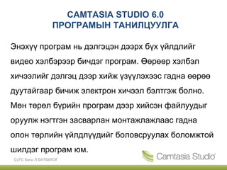 2010 онд багш нарт сургалт явуулж байсан слайдаа орууллаа. Одоо camtasia studio сүүлийн хувилбарууд гоё болсон байна лээ.