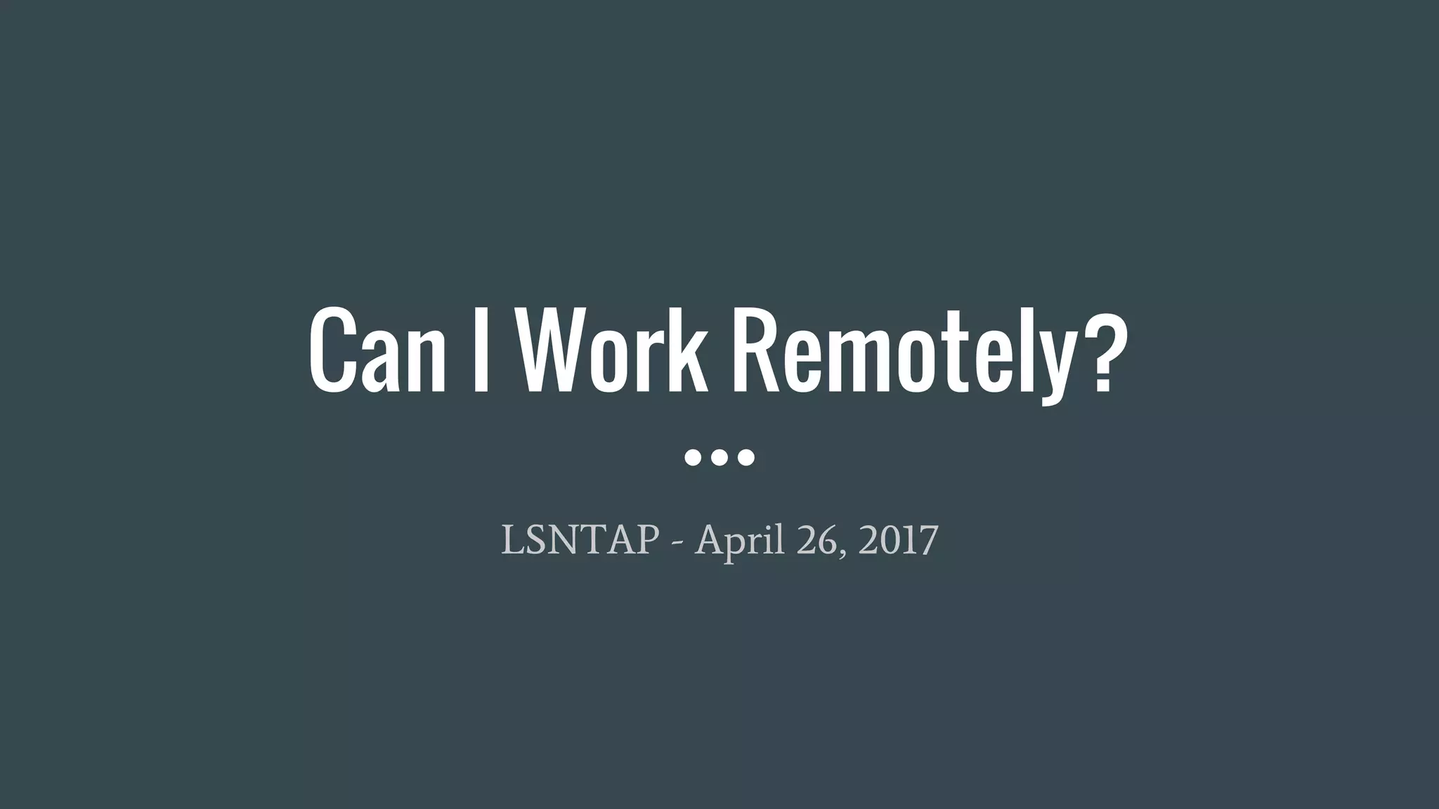 This document discusses working remotely for legal aid organizations. It addresses technology considerations for remote work including internet access, communications, and hardware. It provides perspectives from an executive director and staff member on remote supervision, policies, expectations and challenges. It also discusses lessons learned around effective communication, community, project management, isolation, overwork and self-care for remote employees.