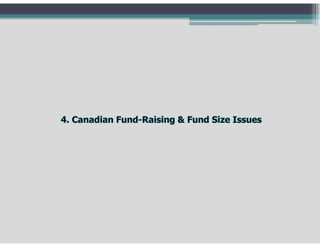2) Domestic venture capital fund activity in Canada has remained flat in recent years, while foreign funds have increased their share of investments.
