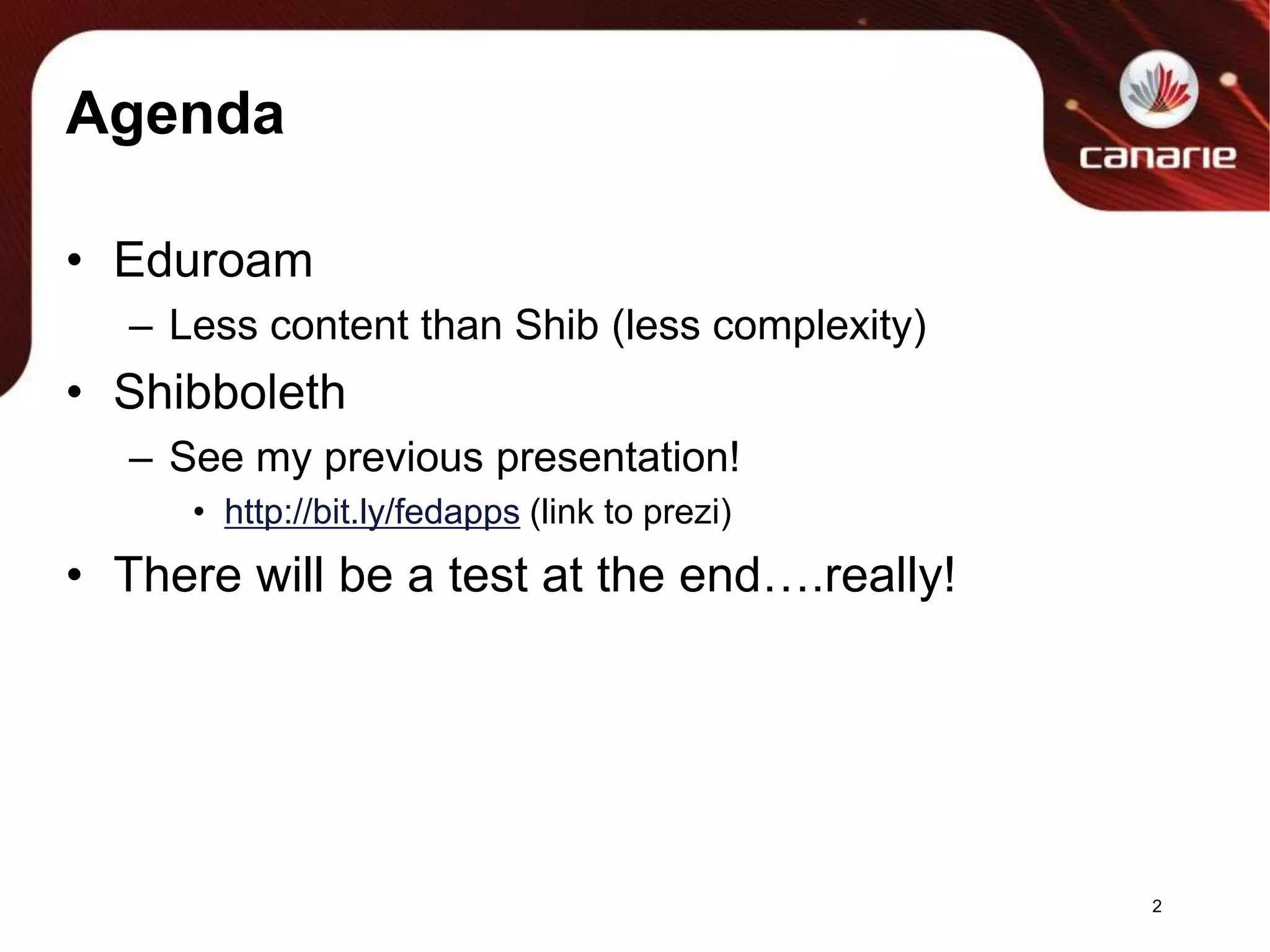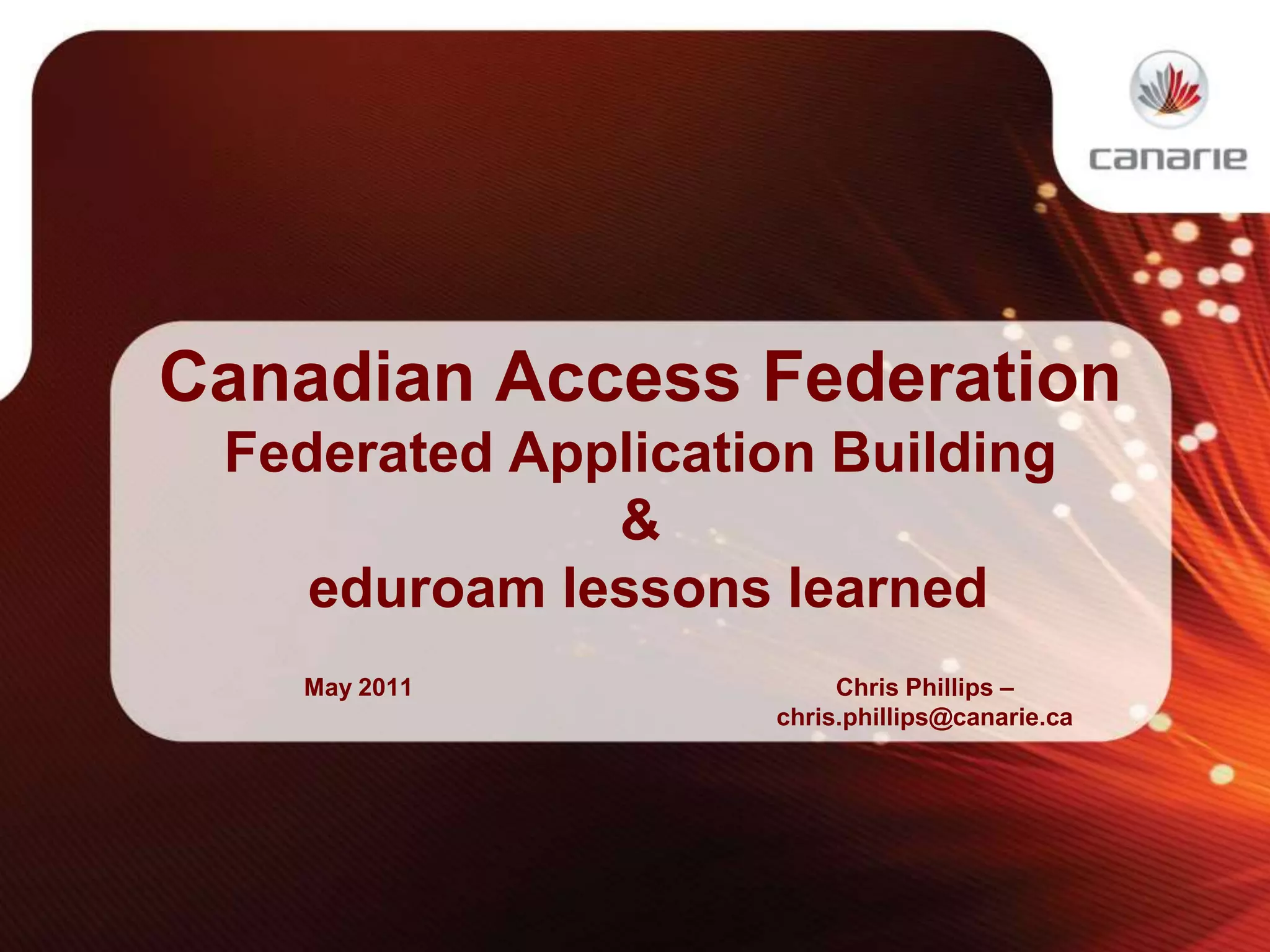 The document discusses eduroam and Shibboleth federations. It provides an overview of eduroam including how authentication works using 802.1X and RADIUS. Stats are presented on early eduroam usage in Canada. Recommendations are made for institutions implementing eduroam including not filtering or shaping bandwidth. Concerns around NATing are discussed. The onboarding process for new eduroam sites is outlined. Growth stats for eduroam in Canada and the US are presented. Questions about eduroam and Shibboleth federations are solicited from attendees.